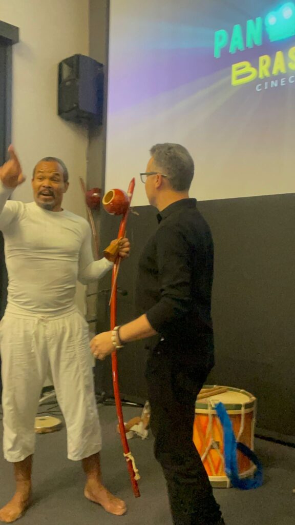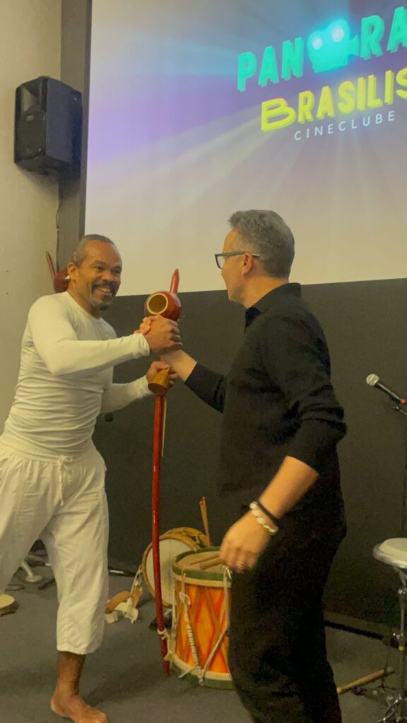 A noite começou com uma apresentação do mestre de capoeira Braz, acompanho por Júlio Henrique e Gabriel (pandeiro) e seguiu com um debate com Juliana Wahlgren (especialista em diversidade e direitos humanos) e Kátia Dunda, militante do movimento negro no Brasil. O debate foi moderado por Ermeson Vieira.